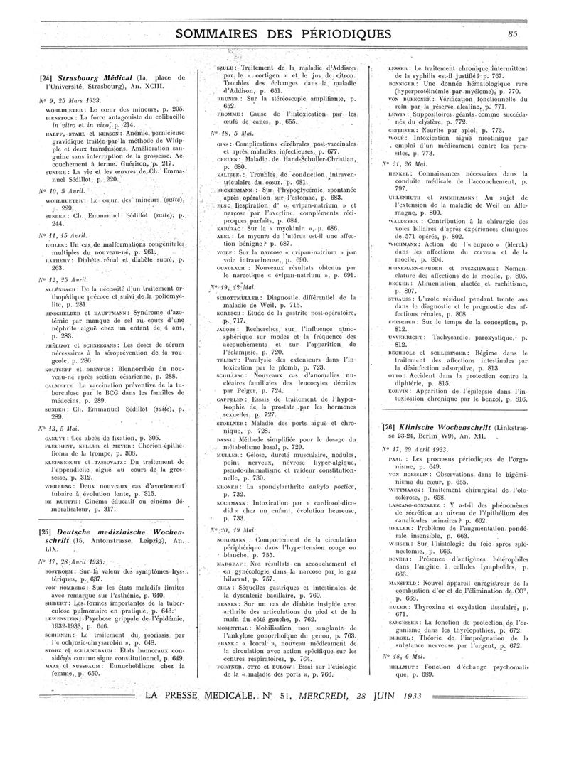 1933, Sommaires des périodiques. -