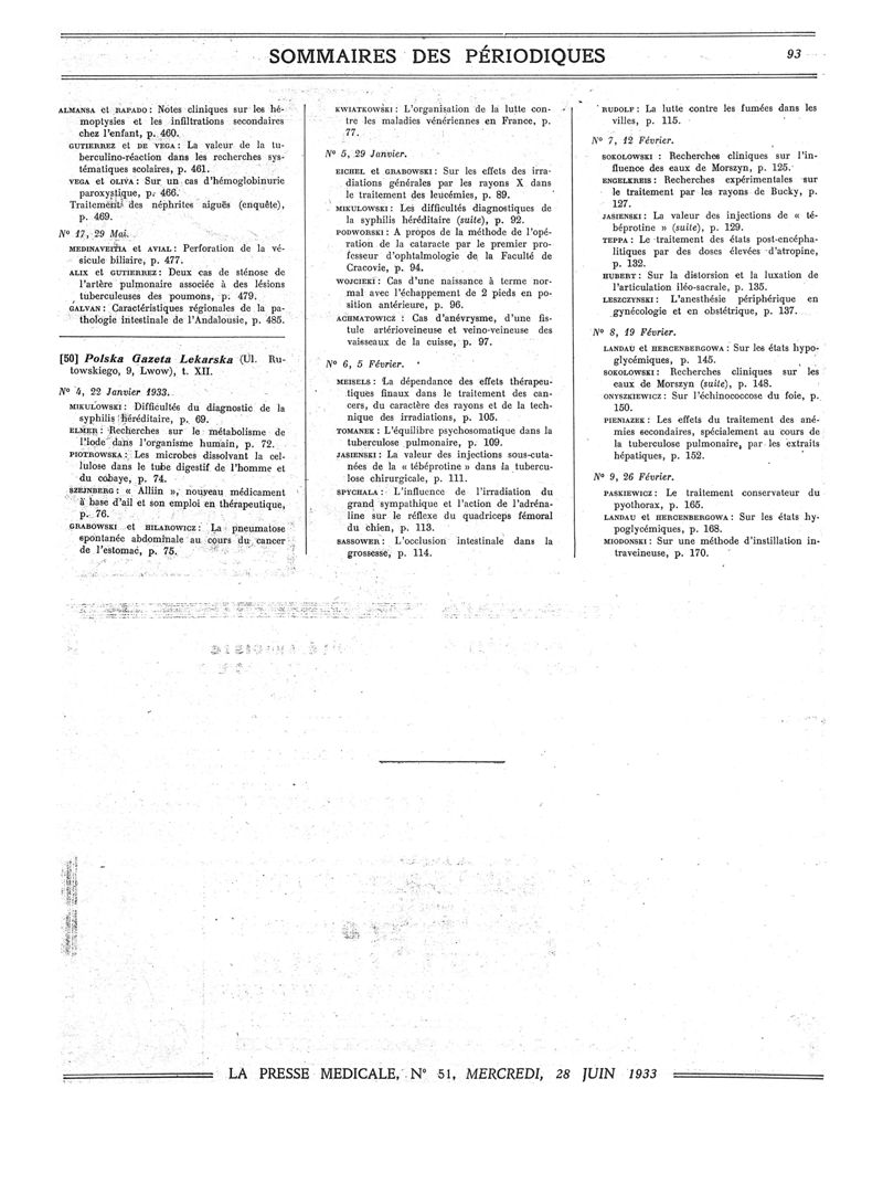 1933, Sommaires des périodiques. -