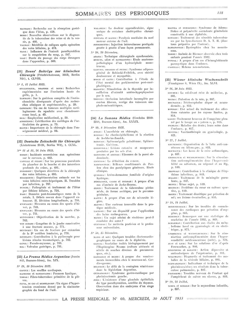 1933, Sommaires des périodiques. -