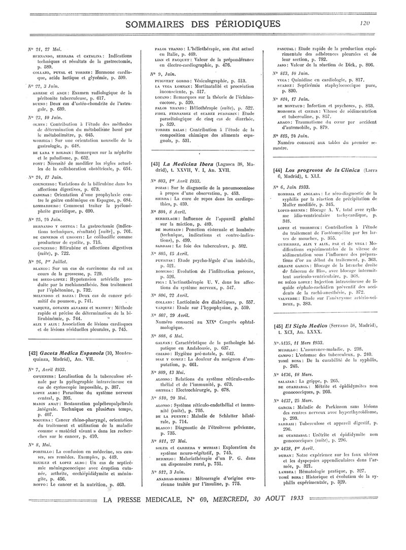1933, Sommaires des périodiques. -