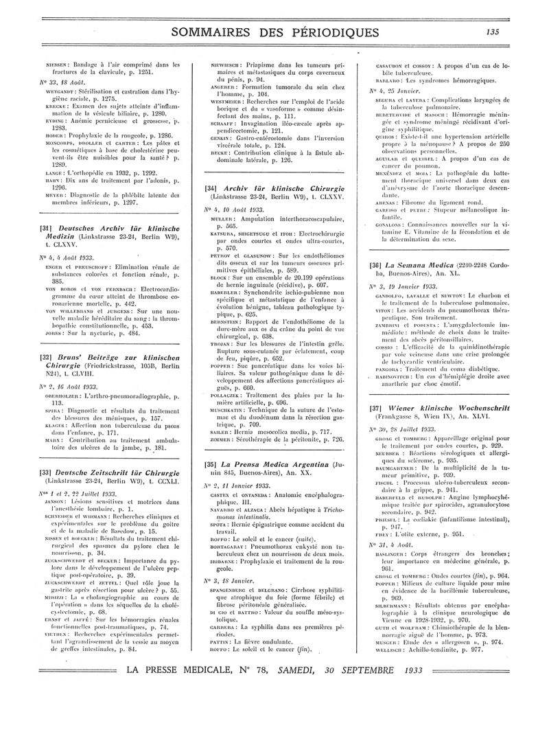 1933, Sommaires des périodiques. -