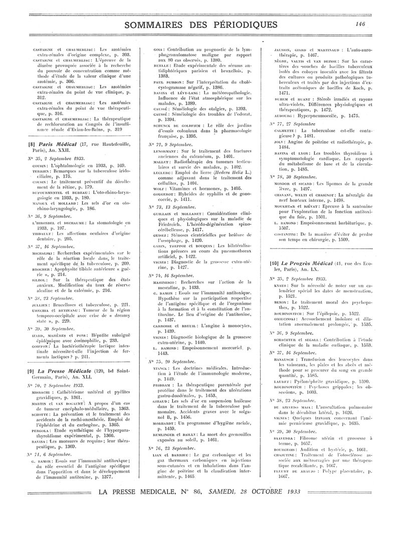 1933, Sommaires des périodiques. -