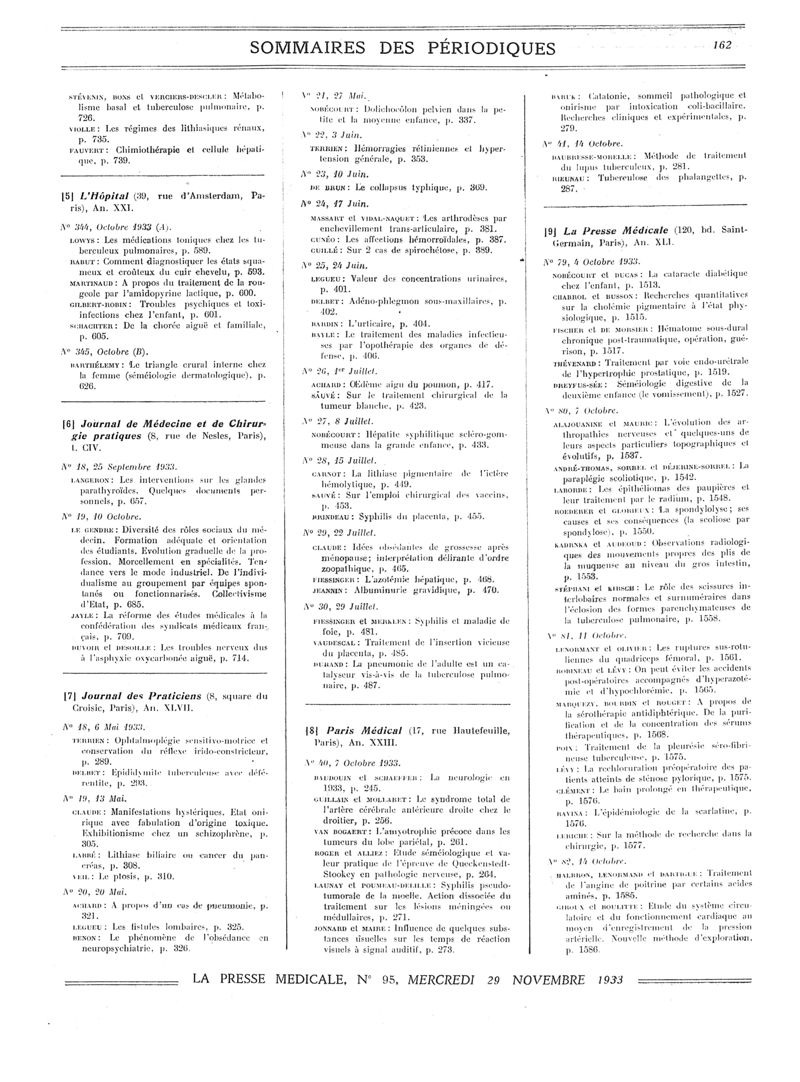 1933, Sommaires des périodiques. -