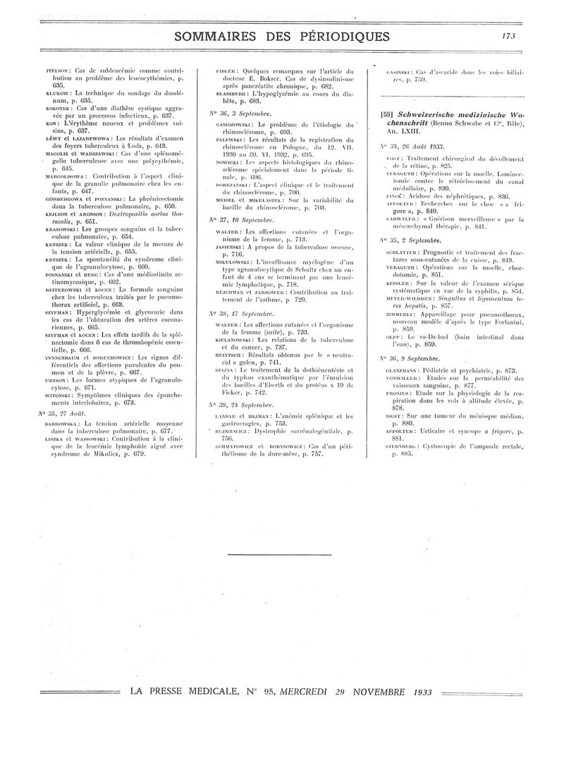 1933, Sommaires des périodiques. -