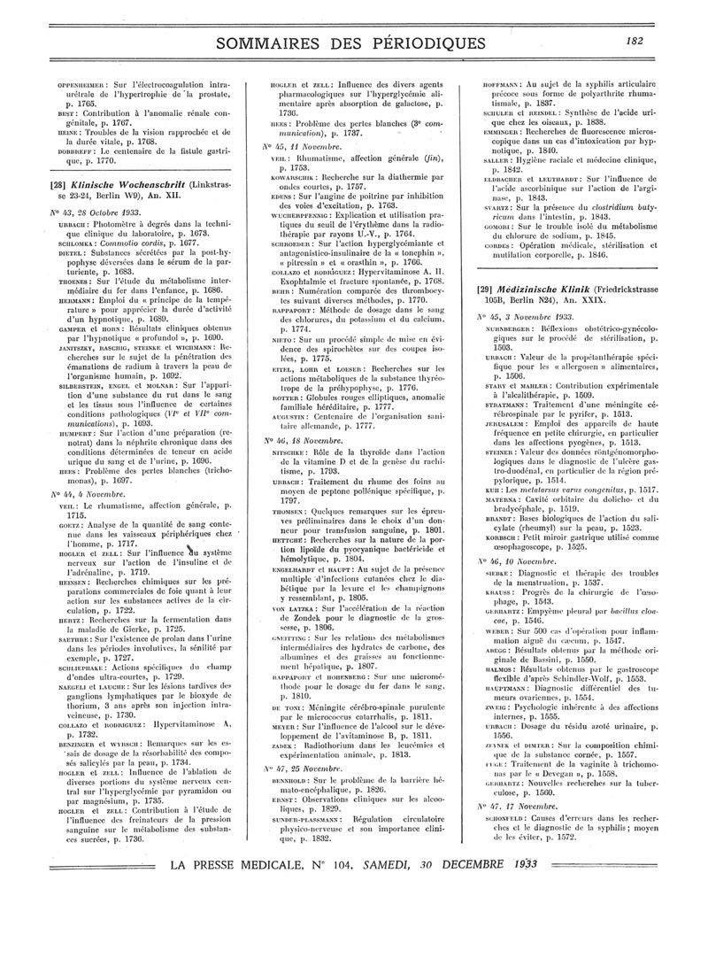 1933, Sommaires des périodiques. -