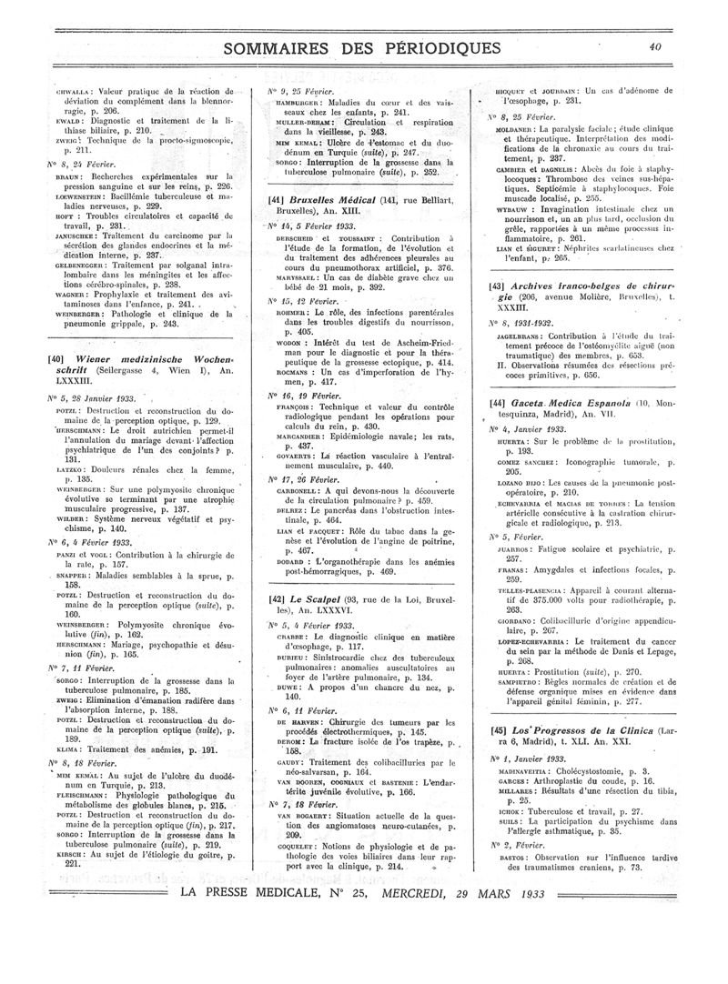 1933, Sommaires des périodiques. -