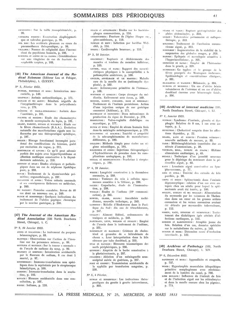 1933, Sommaires des périodiques. -