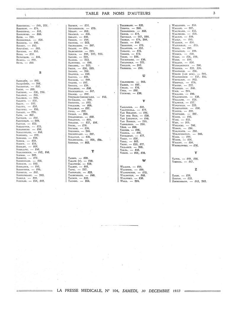 1933, Volume de tables. -