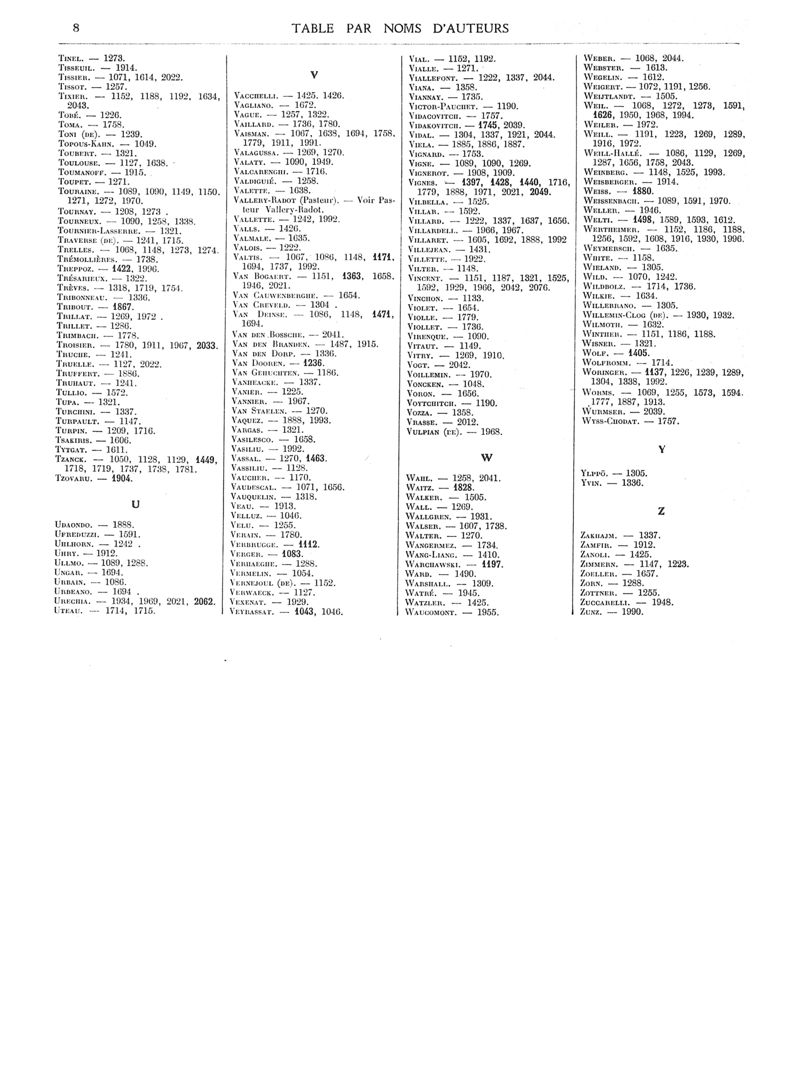 1933, Volume de tables. -