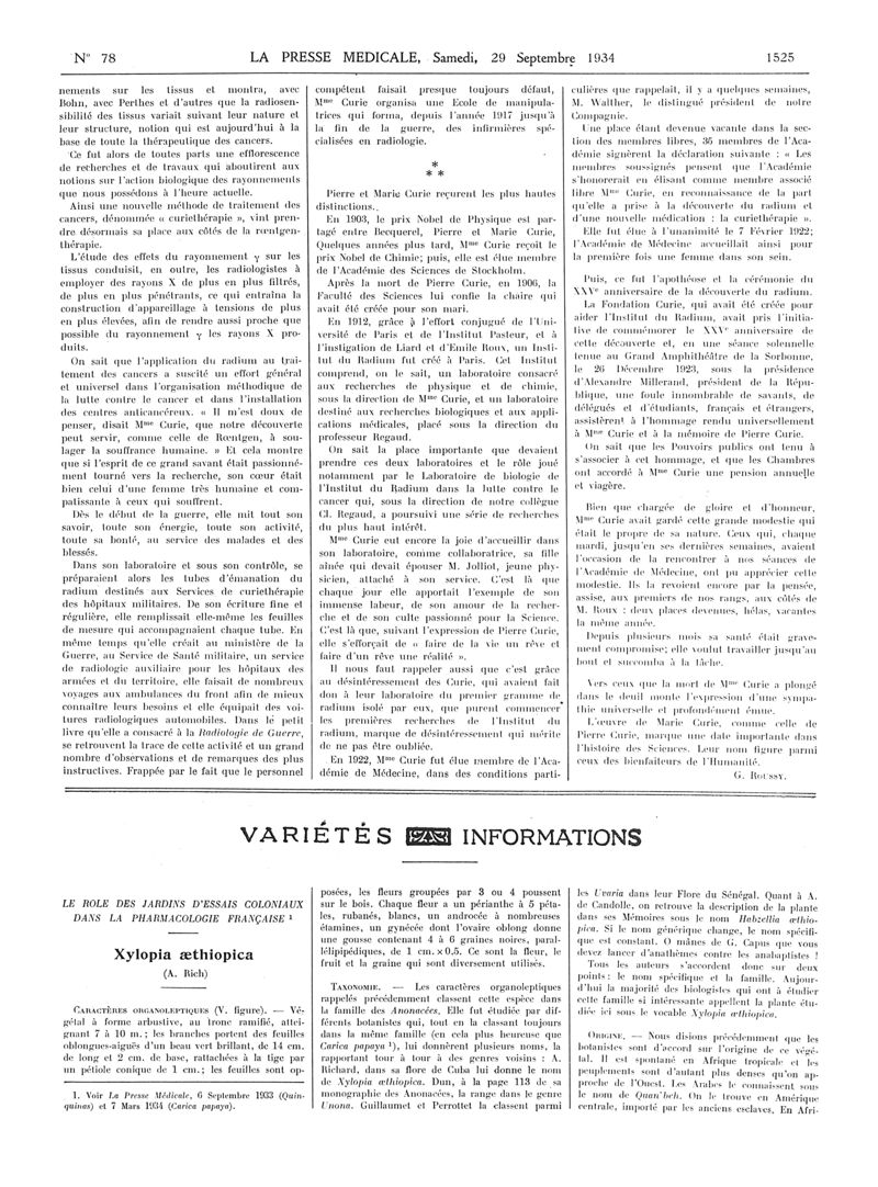 1934, Articles originaux. -