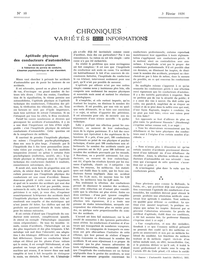 1934, Articles originaux. -