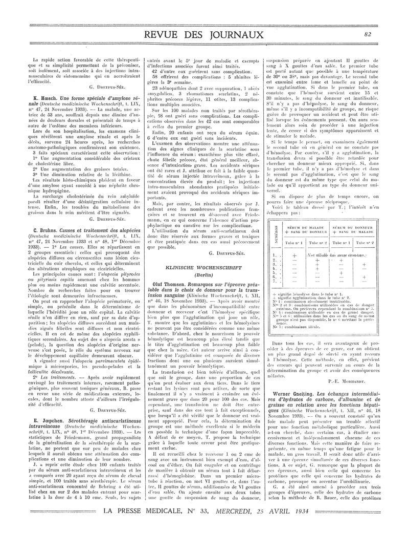 1934, Revue des journaux. -
