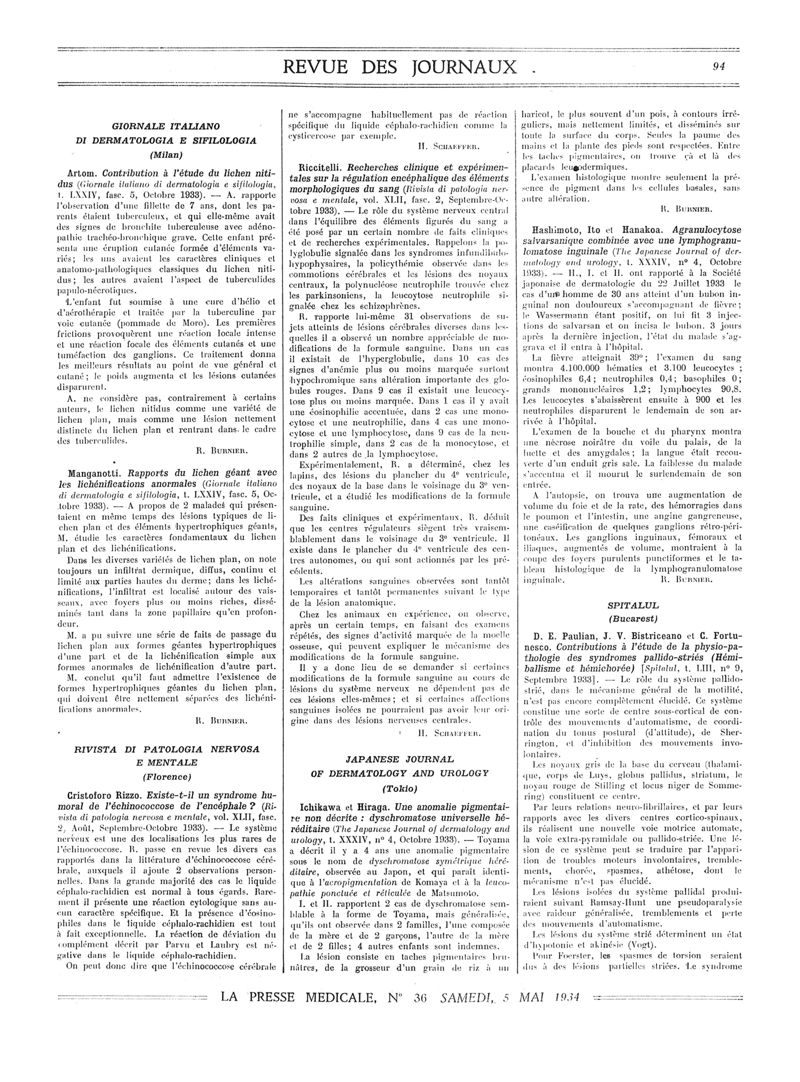 1934, Revue des journaux. -