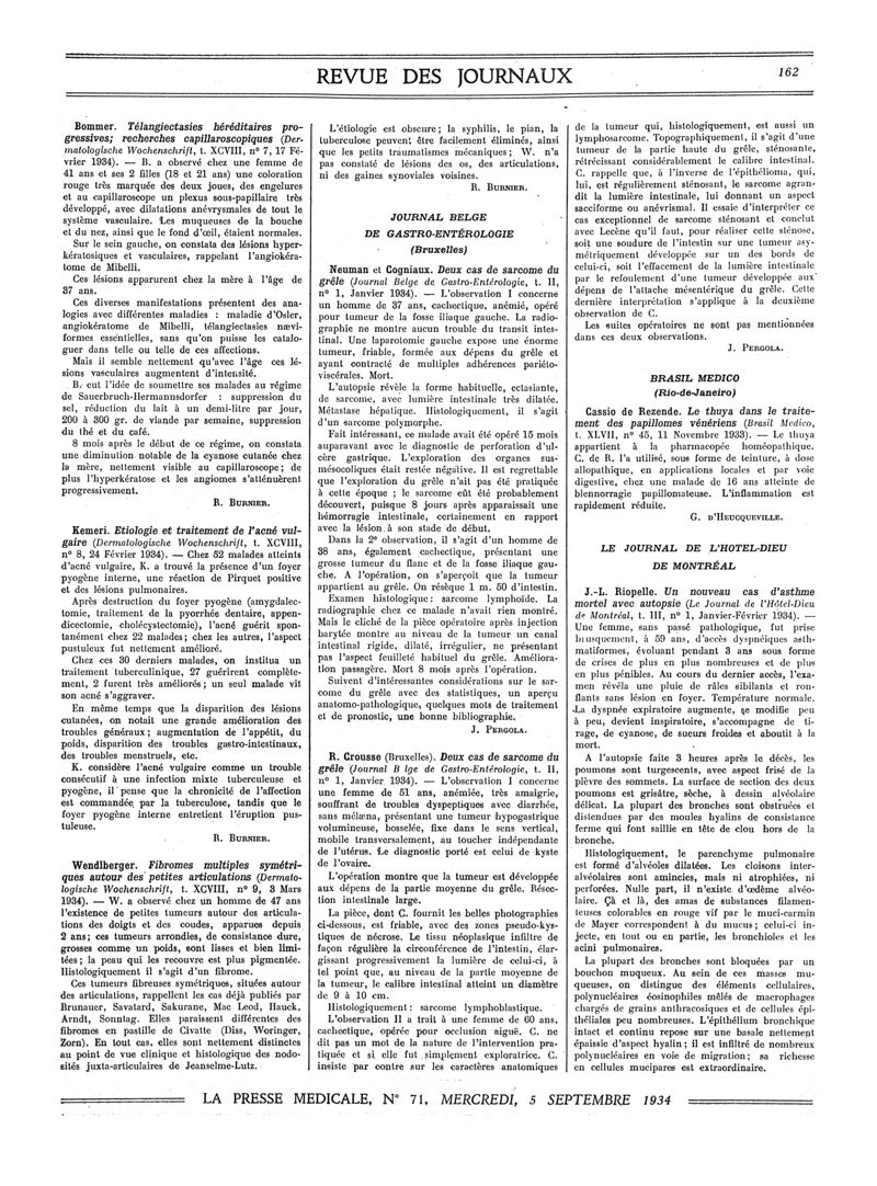 1934, Revue des journaux. -