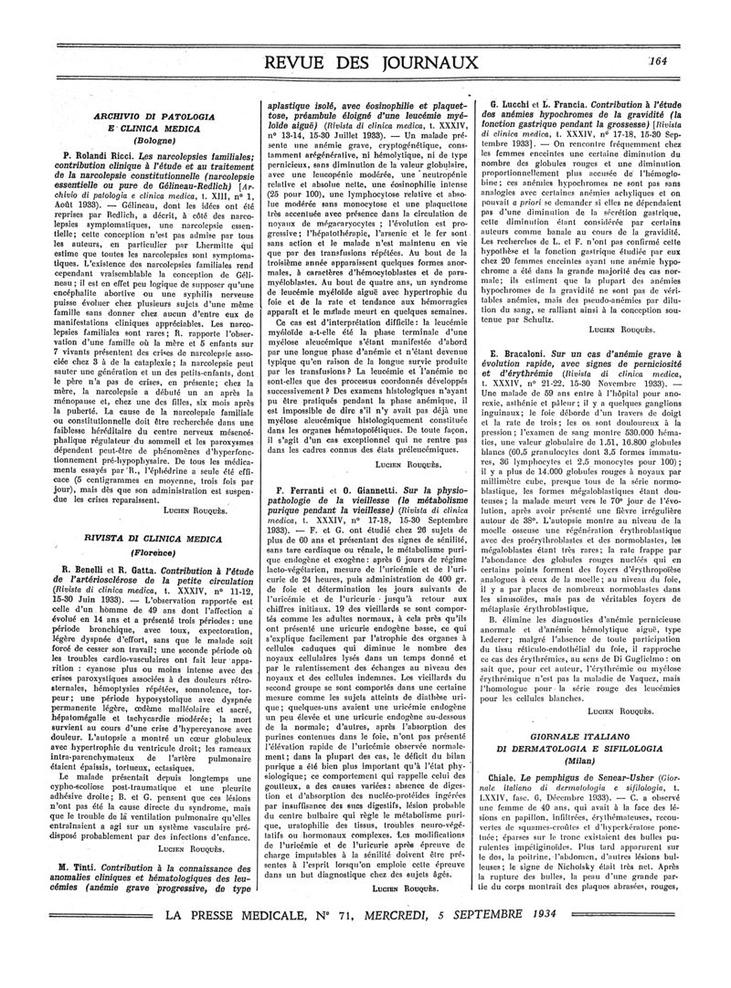 1934, Revue des journaux. -