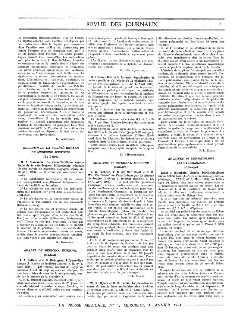 1934, Revue des journaux. -