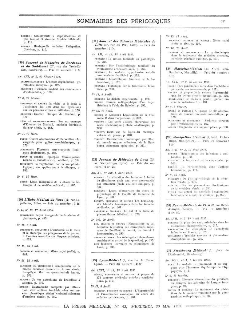 1934, Sommaires des périodiques. -