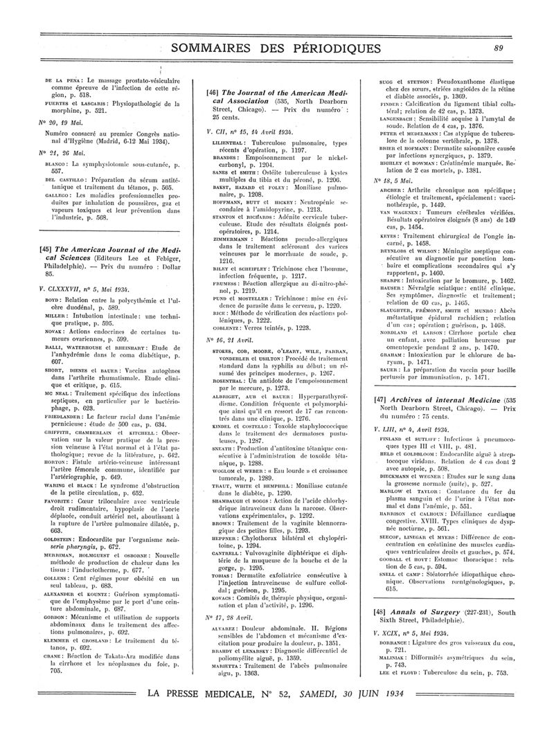 1934, Sommaires des périodiques. -