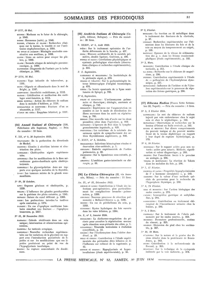 1934, Sommaires des périodiques. -