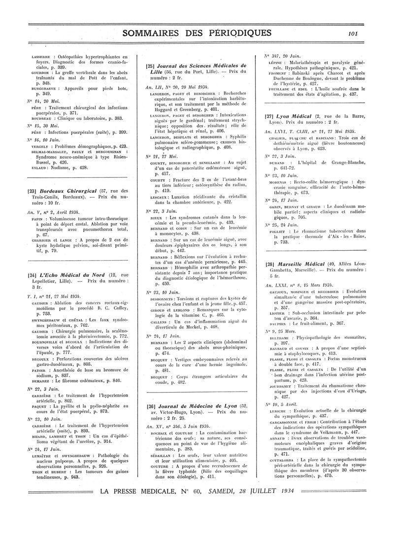 1934, Sommaires des périodiques. -
