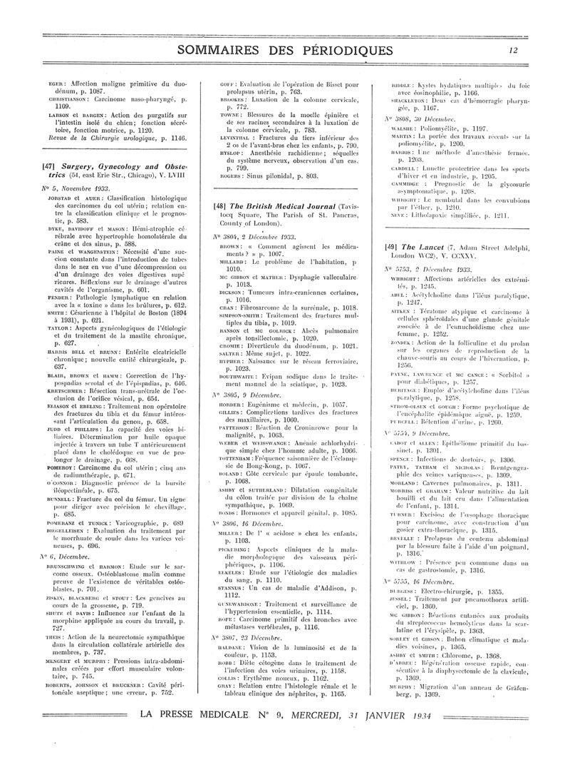 1934, Sommaires des périodiques. -