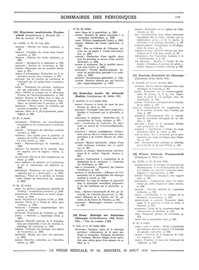 1934, Sommaires des périodiques. -