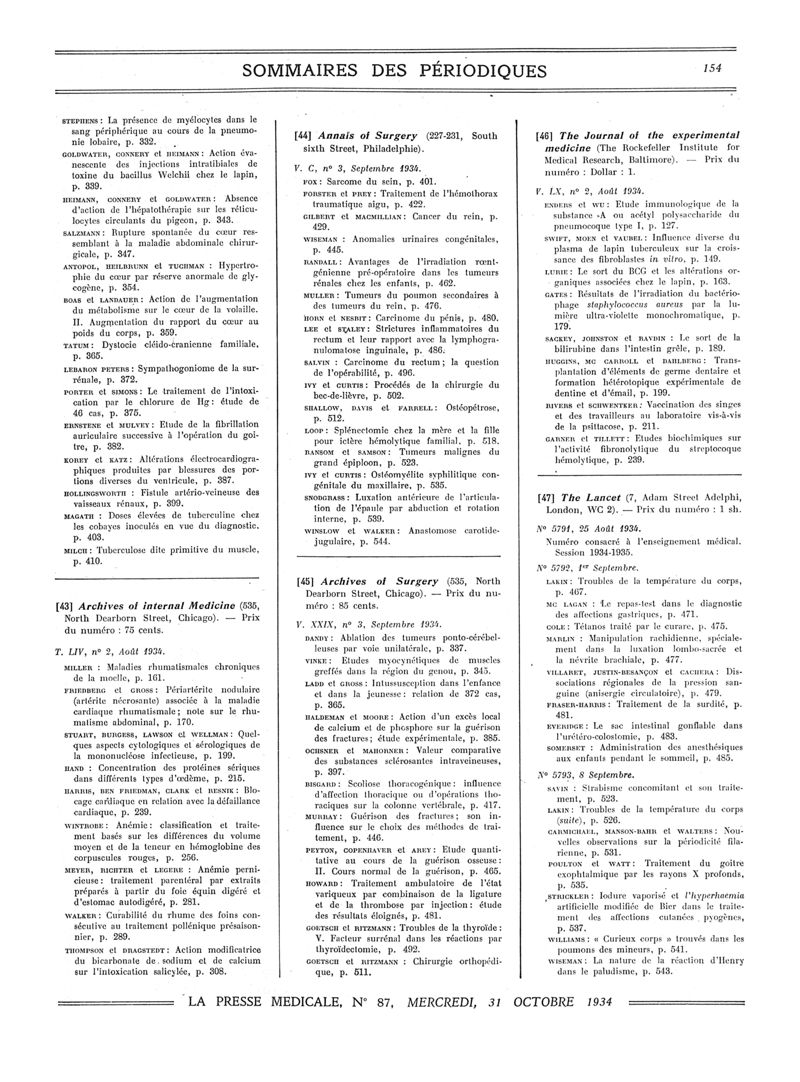 1934, Sommaires des périodiques. -