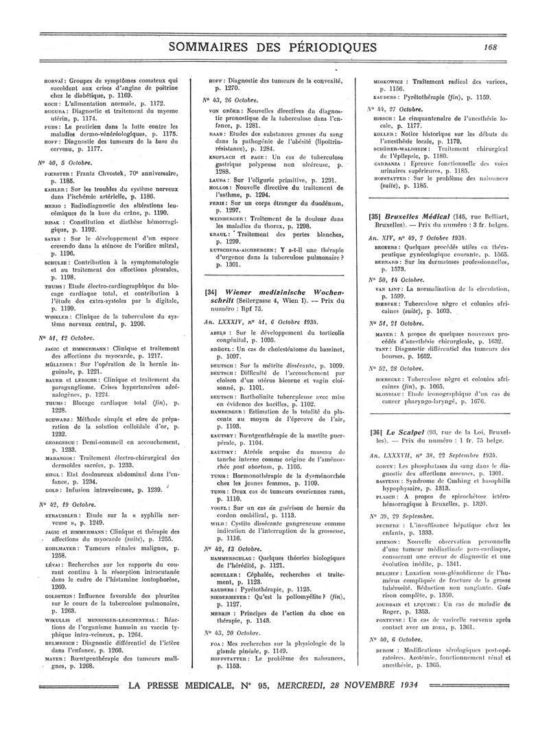 1934, Sommaires des périodiques. -