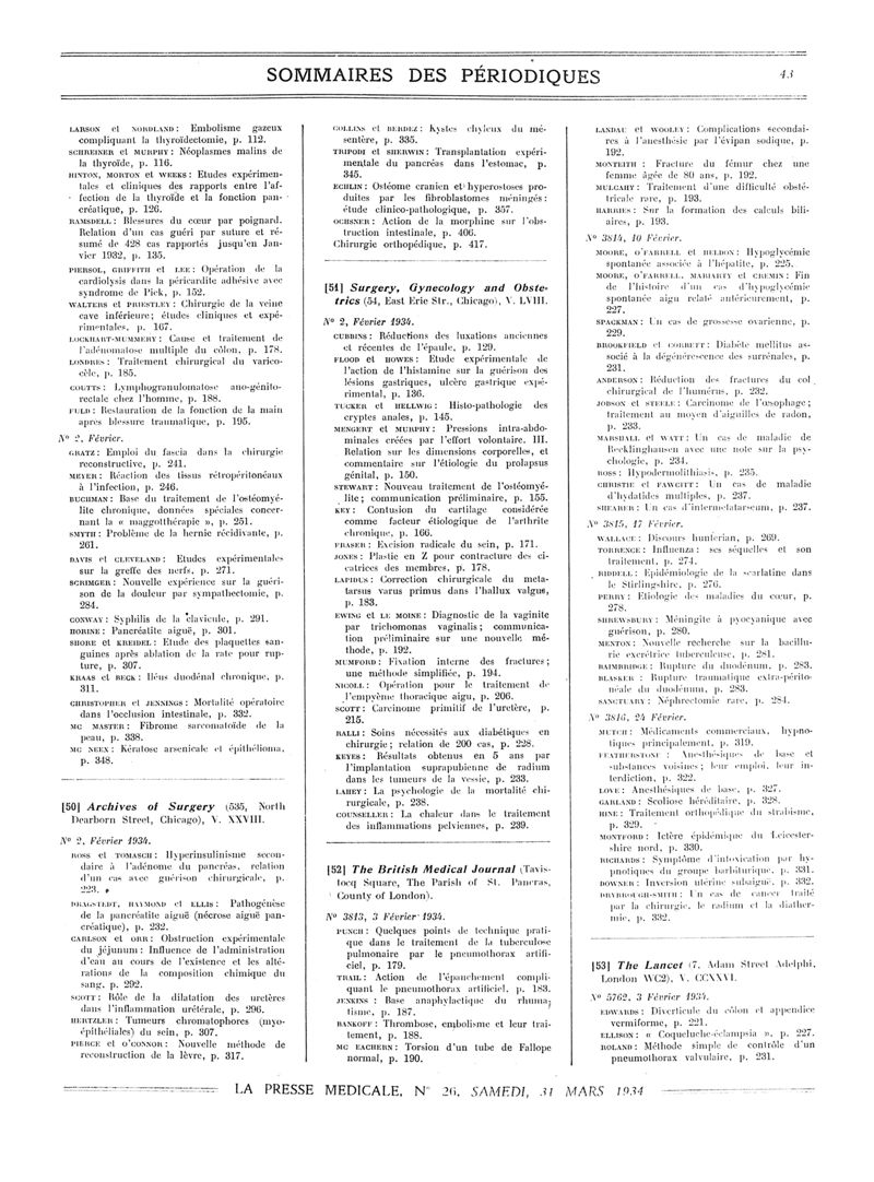 1934, Sommaires des périodiques. -