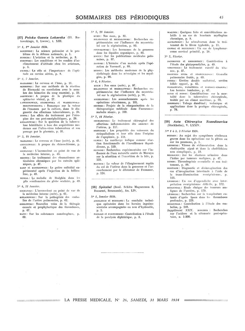 1934, Sommaires des périodiques. -