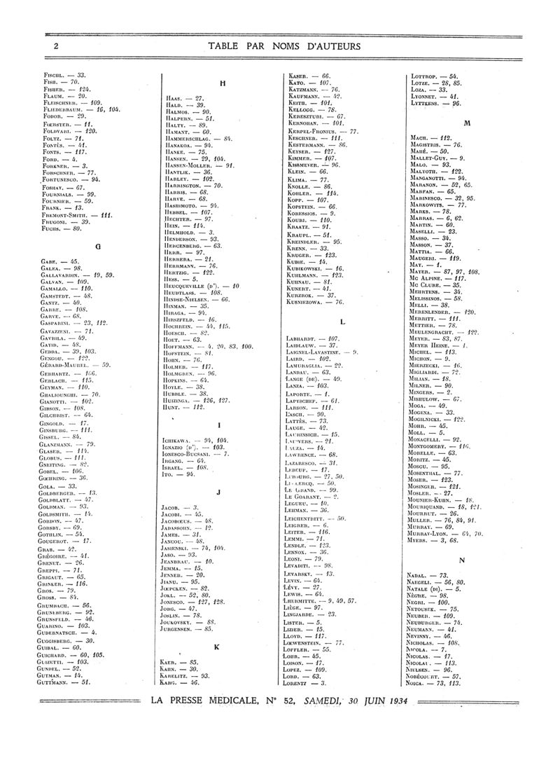 1934, Volume de tables. -