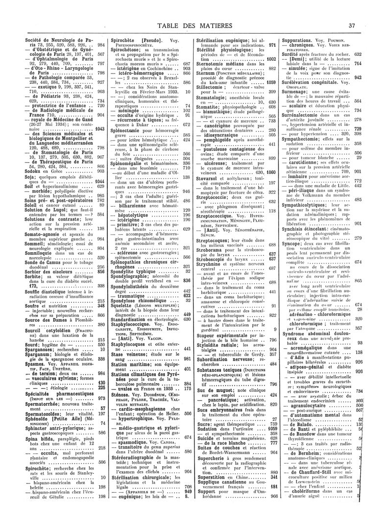 1934, Volume de tables. -