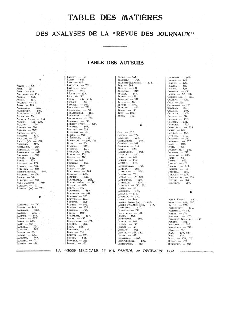1934, Volume de tables. -