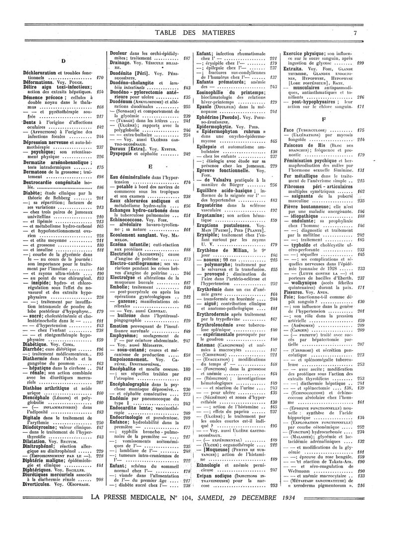 1934, Volume de tables. -