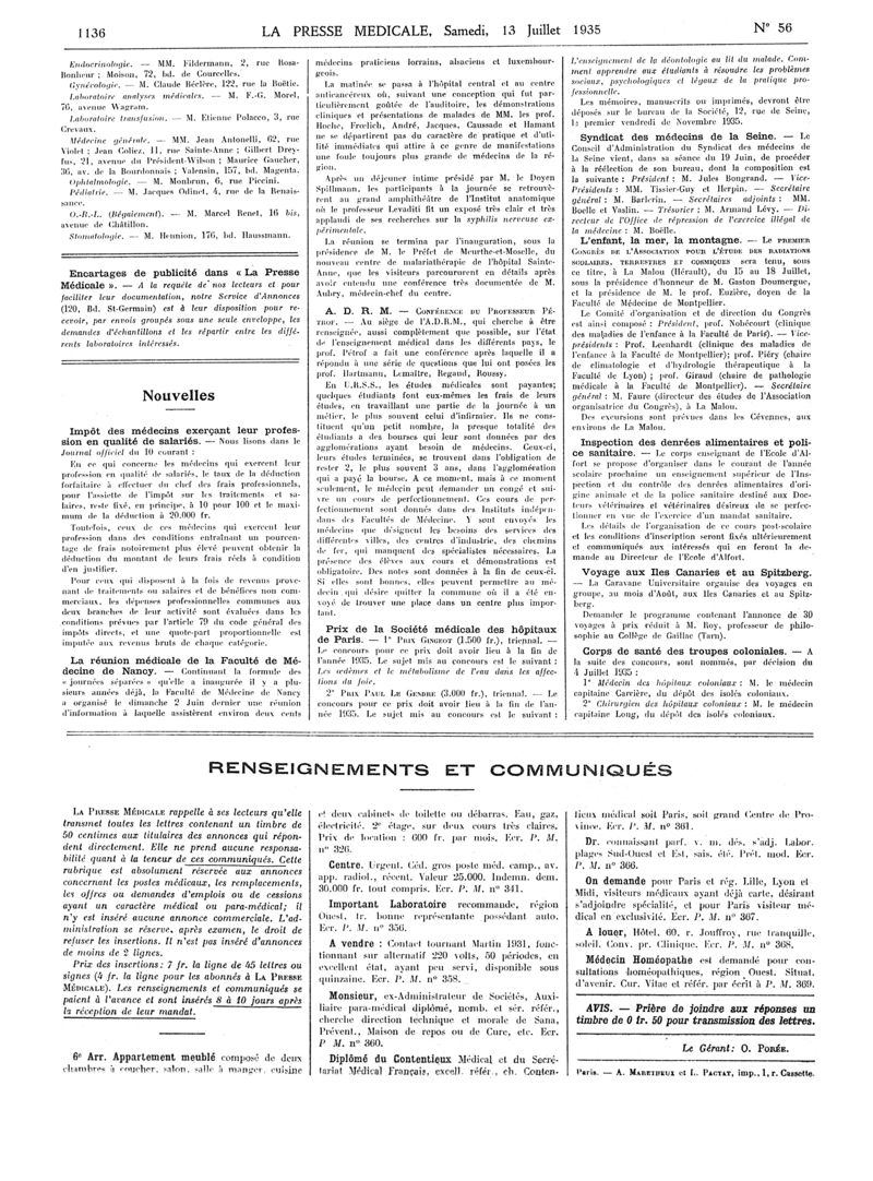 1935, Articles originaux. -