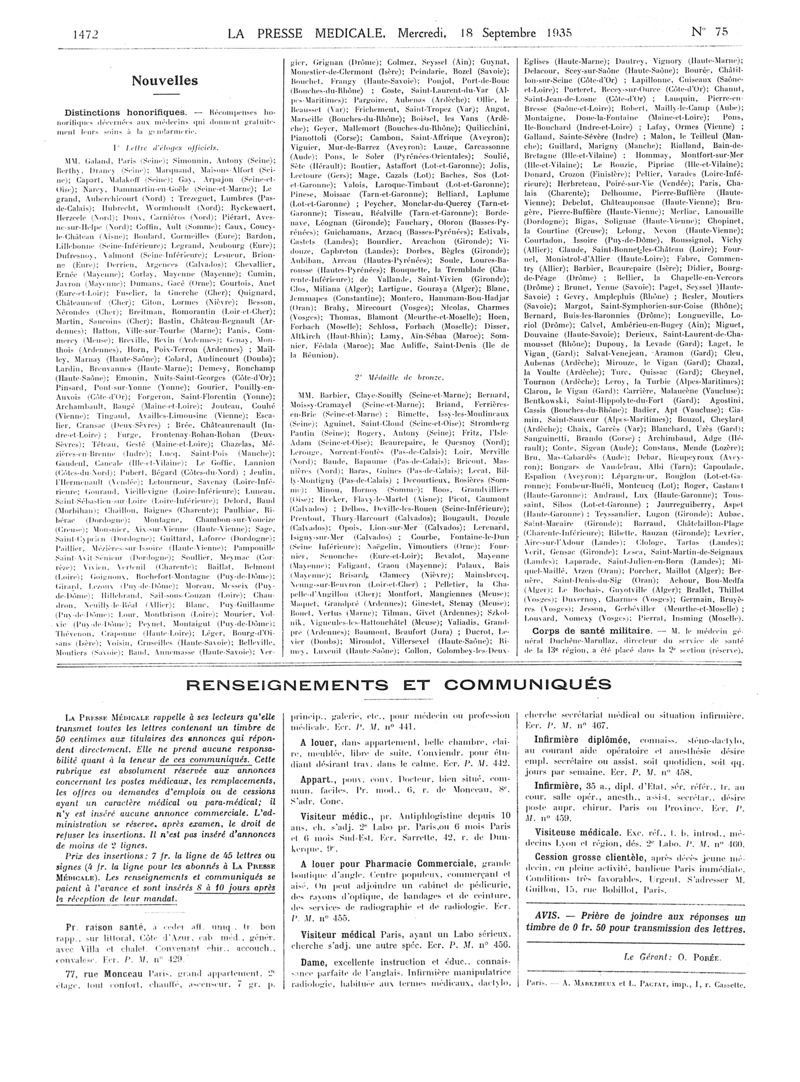 1935, Articles originaux. -