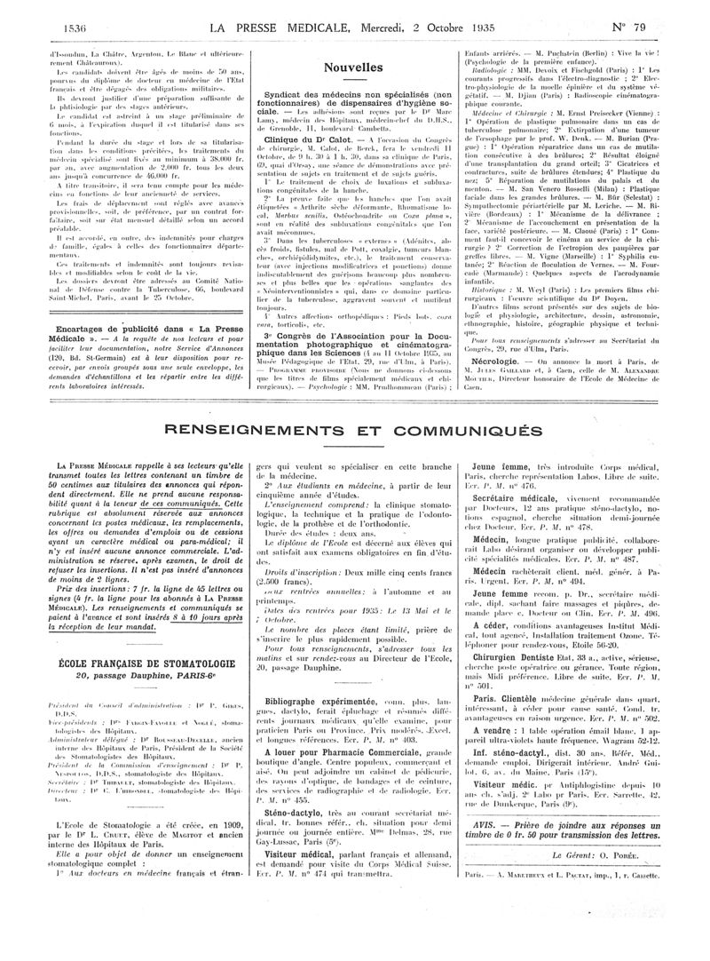 1935, Articles originaux. -