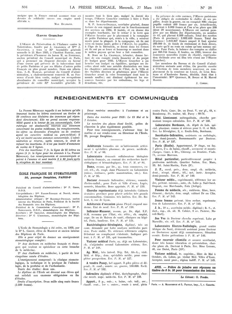 1935, Articles originaux. -
