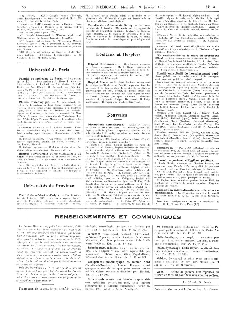 1935, Articles originaux. -