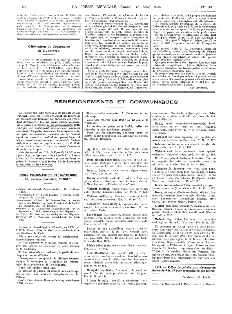 1935, Articles originaux. -