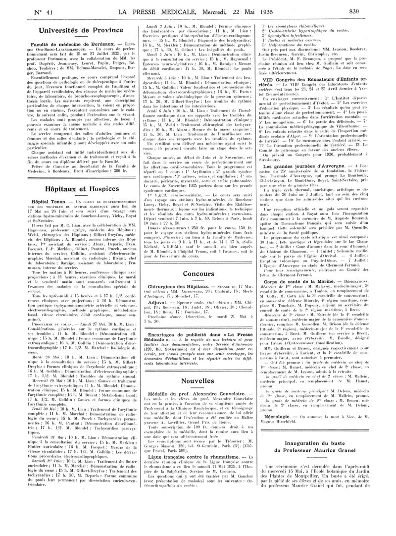 1935, Articles originaux. -