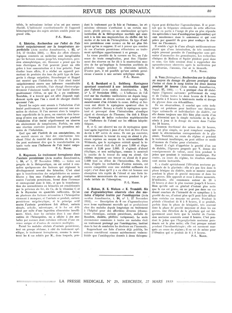 1935, Revue des journaux. -