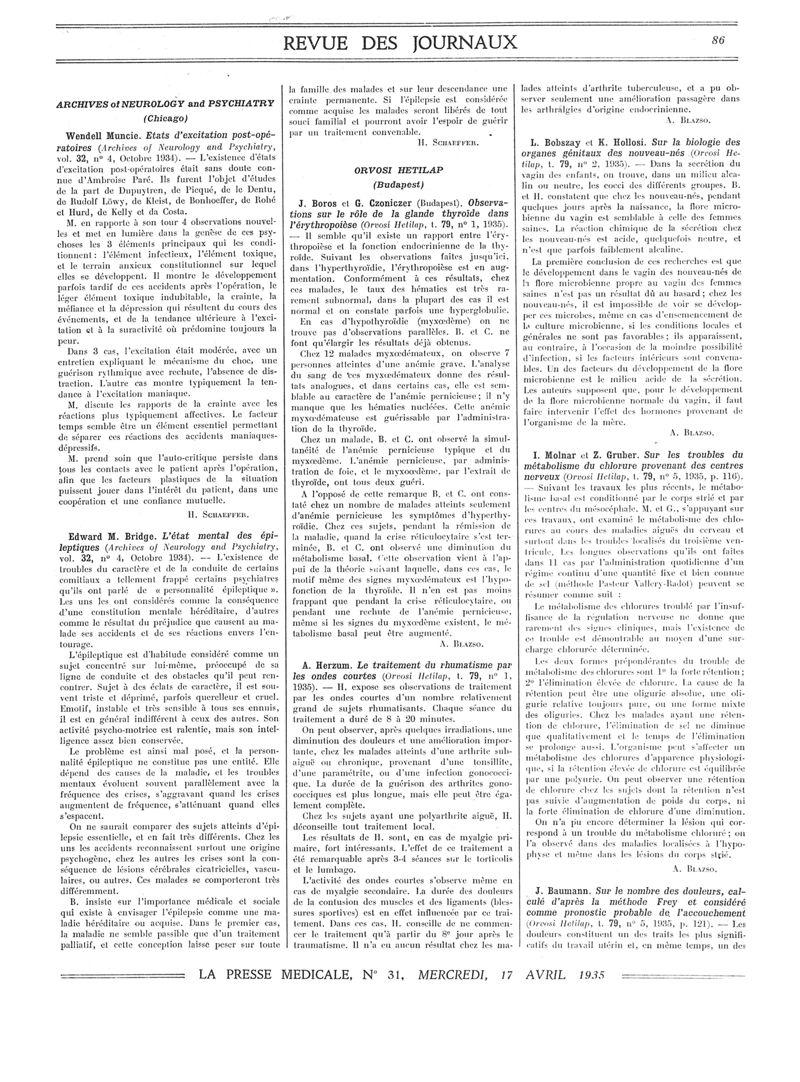 1935, Revue des journaux. -