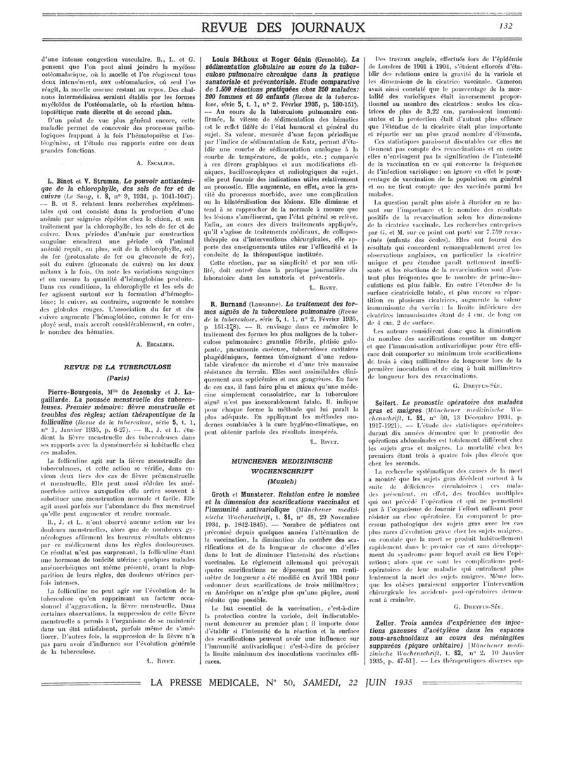1935, Revue des journaux. -