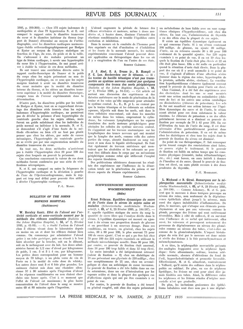 1935, Revue des journaux. -