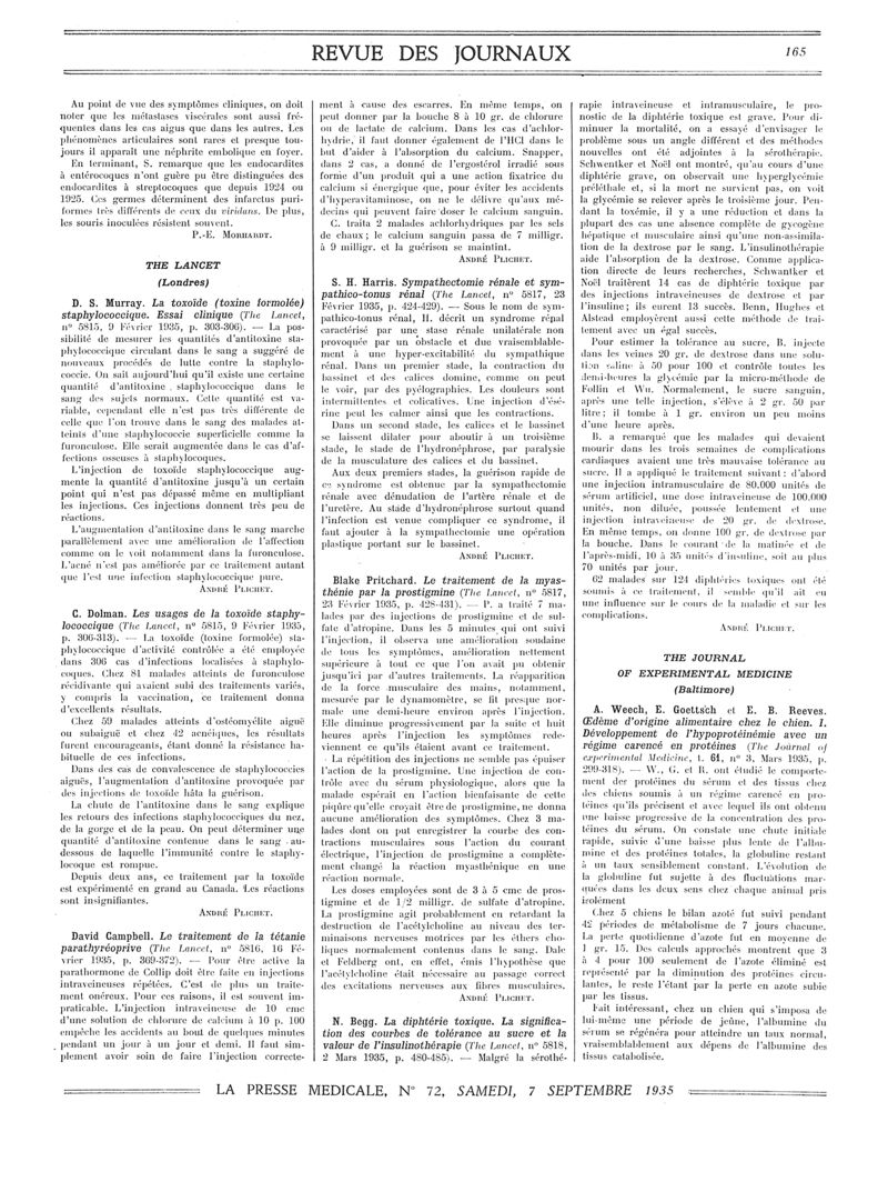 1935, Revue des journaux. -