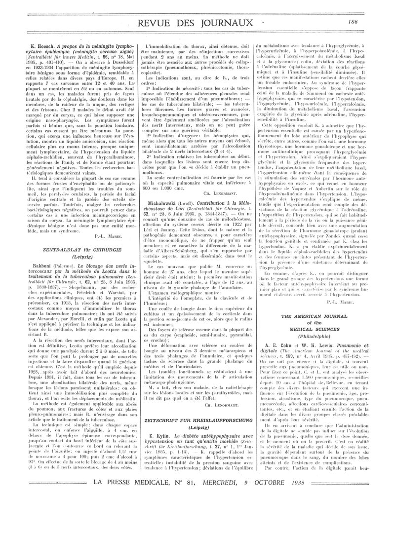 1935, Revue des journaux. -