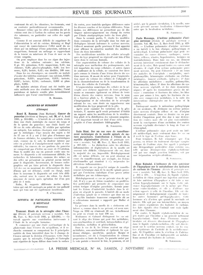 1935, Revue des journaux. -