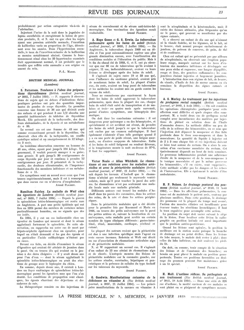 1935, Revue des journaux. -
