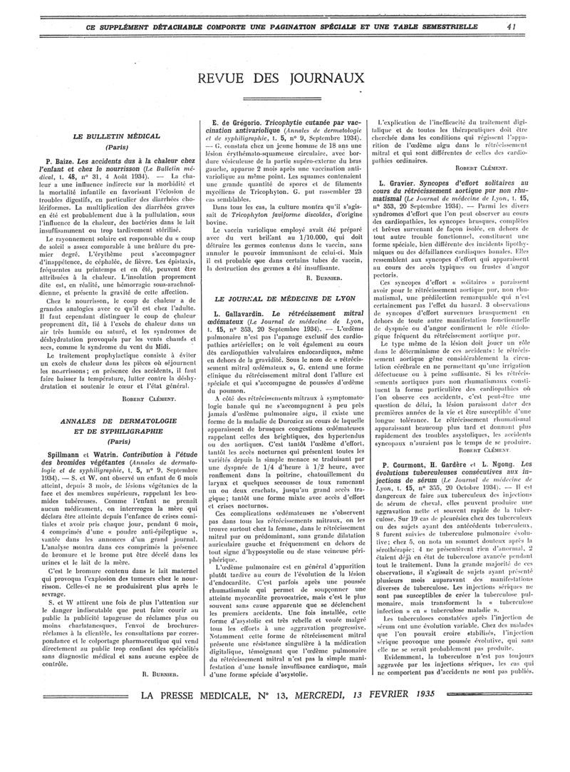 1935, Revue des journaux. -
